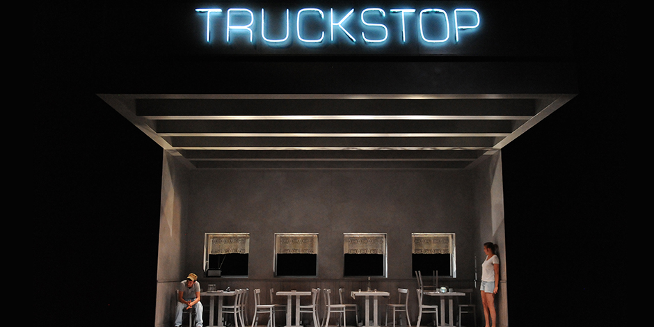 Telles les pièces d’un puzzle, les désirs et idéaux de ces trois personnages se dévoilent comme autant de tentatives d’échapper au quotidien. Composant un passionnant huis-clos à la dramaturgie morcelée, l’auteure hollandaise Lot Vekemans nous livre par fragment chaque pensée, chaque événement. Nous devenons ainsi les témoins d’un engrenage de situations, jusqu’à cette nuit tragique qui décidera du sort de chacun. À travers les moindres détails de sa mise en scène, Arnaud Meunier donne vie à ce no man’s land chargé de mystère. Bien plus qu’un polar social, Truckstop est une pièce tout en nuances, dont l’étrange beauté fait résonner la force authentique de l’amour et la soif inespérée d’autres lendemains.